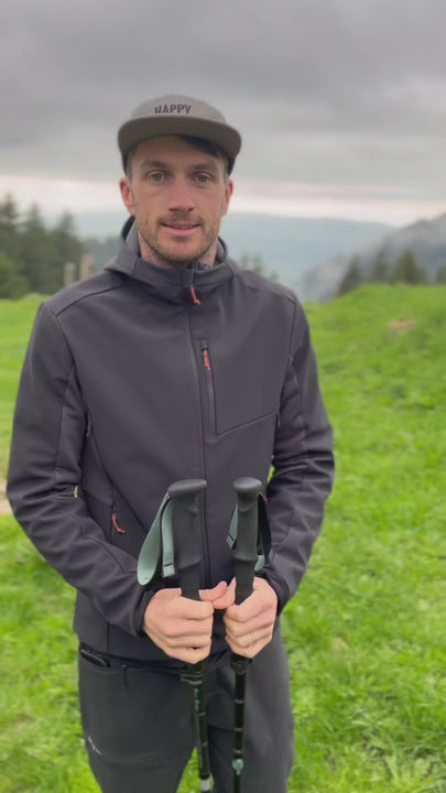 - Hiking Stick with anti-shock mechanism, reduces stress on body
